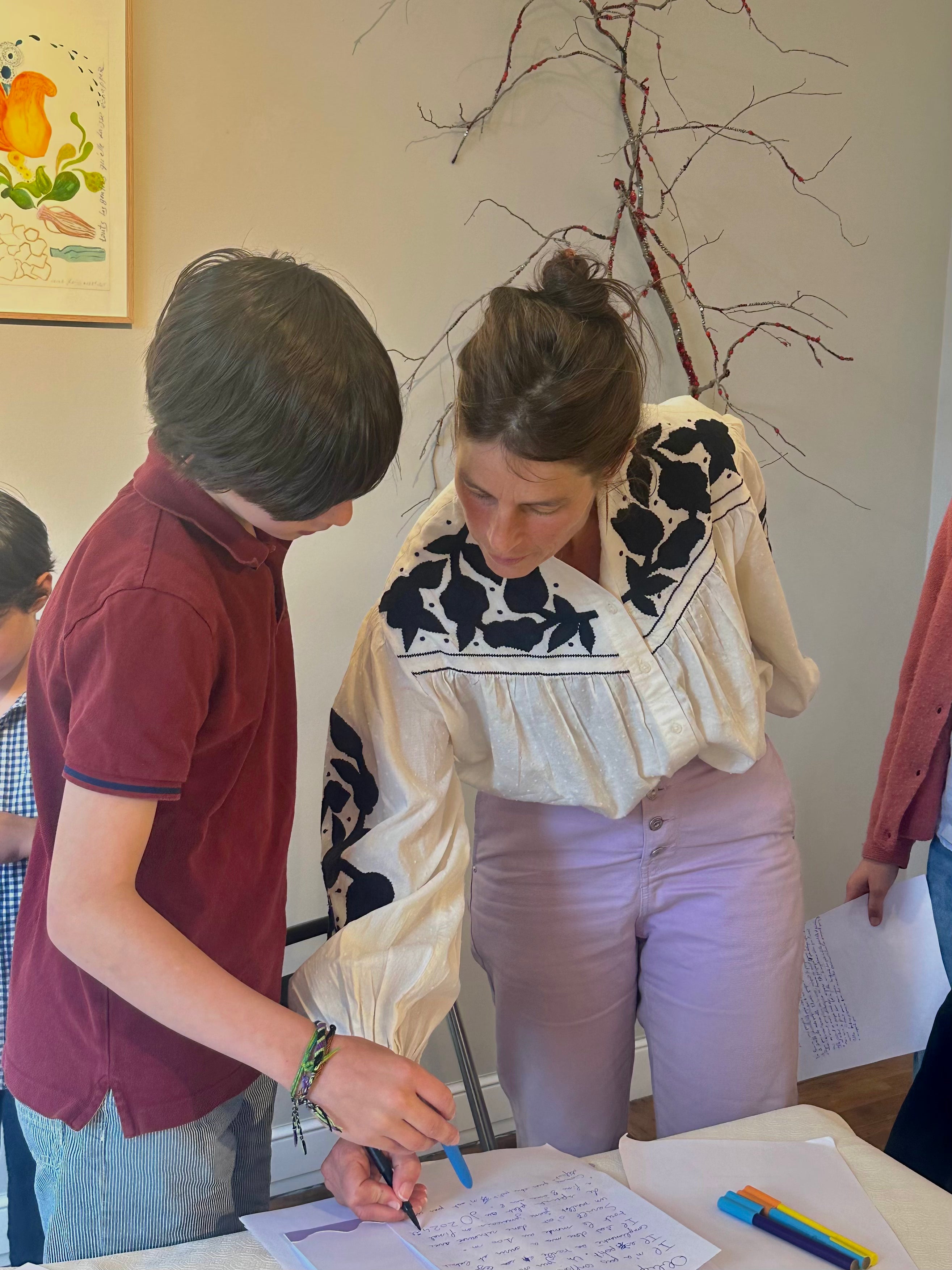 Combien c’est une joie d’ouvrir grand ces portes de l’imaginaire avec l'écrivaine Marie Berne, d’écrire non pas pour eux mais avec eux : faire de la place, et arriver à un petit conte à soi. Parce que tout est permis dans une histoire, on vous offre un monde. Et du même coup, on vous fait comprendre le monde.