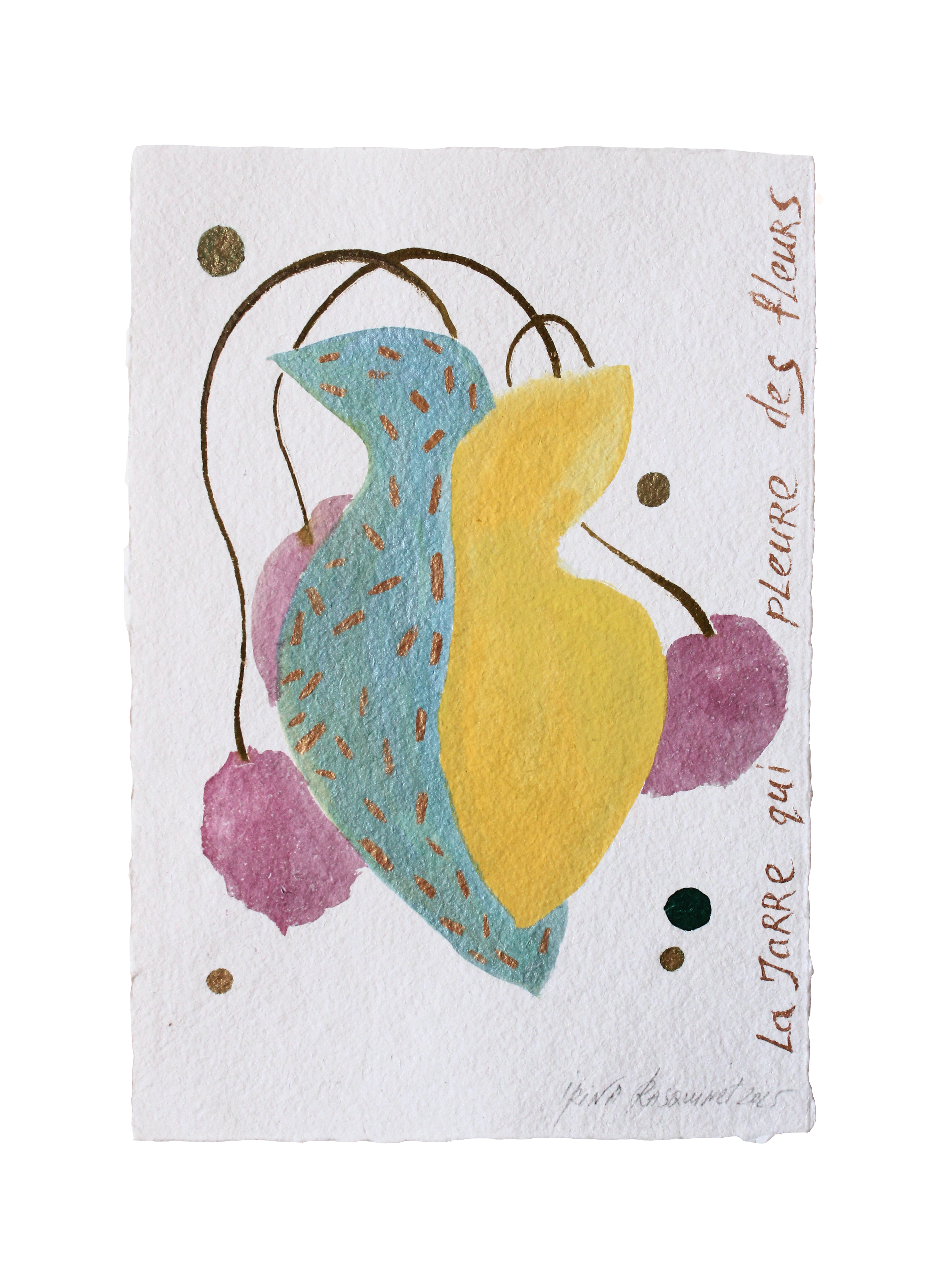 Irina Rasquinet est une artiste russe vivant à Paris. Son œuvre oscille entre sculptures monumentales et bijoux fantaisistes, mêlant spontanéité et poésie. Inspirée par les expressions françaises, qu’elle détourne avec surréalisme, elle explore des thèmes comme l’amour, l’identité et la nature à travers un regard ludique. Dans l’illustration imaginée pour Une histoire au mur , Irina Rasquinet revisite la fable des Deux Jarres avec sa sensibilité unique. Son travail joue sur les contrastes et la métaphore, insufflant à cette histoire intemporelle une dimension onirique et légère, fidèle à son univers artistique.